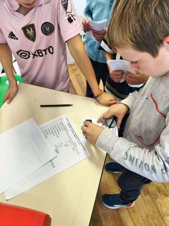 Ce lundi, les 13 élèves de CE/CM bilingue , accompagnés de leur enseignante et d’une stagiaire future enseignante, Agathe, se sont rendus à la mairie, dans le cadre du travail en EMC (en lien avec les élections de Mars 2026 à venir). L’objectif était de les familiariser avec le vocabulaire et les rituels des élections.