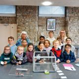 Ce lundi, les 13 élèves de CE/CM bilingue , accompagnés de leur enseignante et d’une stagiaire future enseignante, Agathe, se sont rendus à la mairie, dans le cadre du travail en EMC (en lien avec les élections de Mars 2026 à venir). L’objectif était de les familiariser avec le vocabulaire et les rituels des élections.